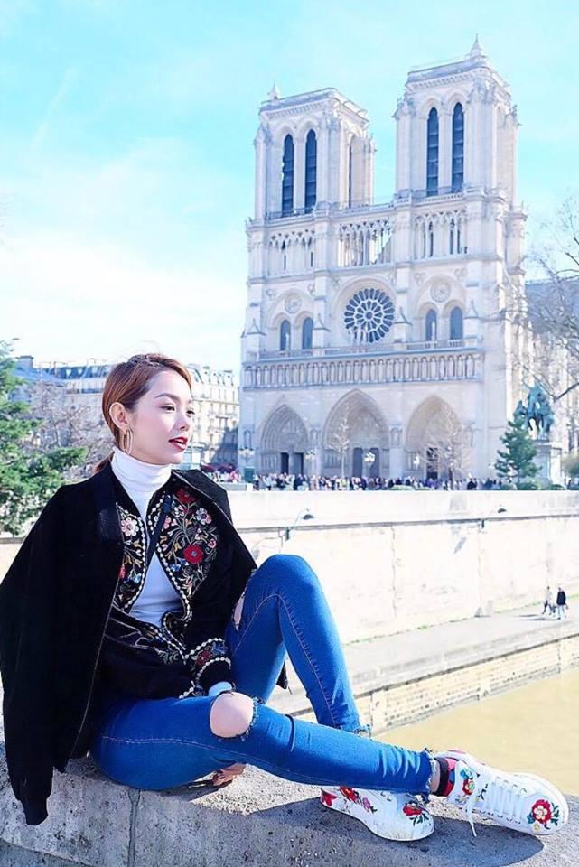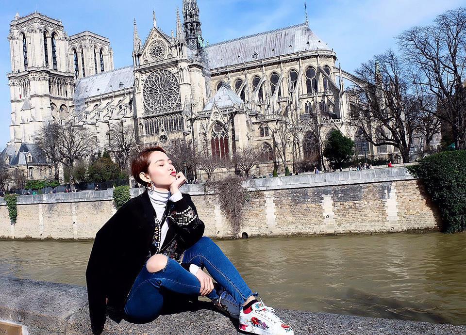 Minh Hằng thả dáng bên nhà thờ Notre Dame - Pháp.