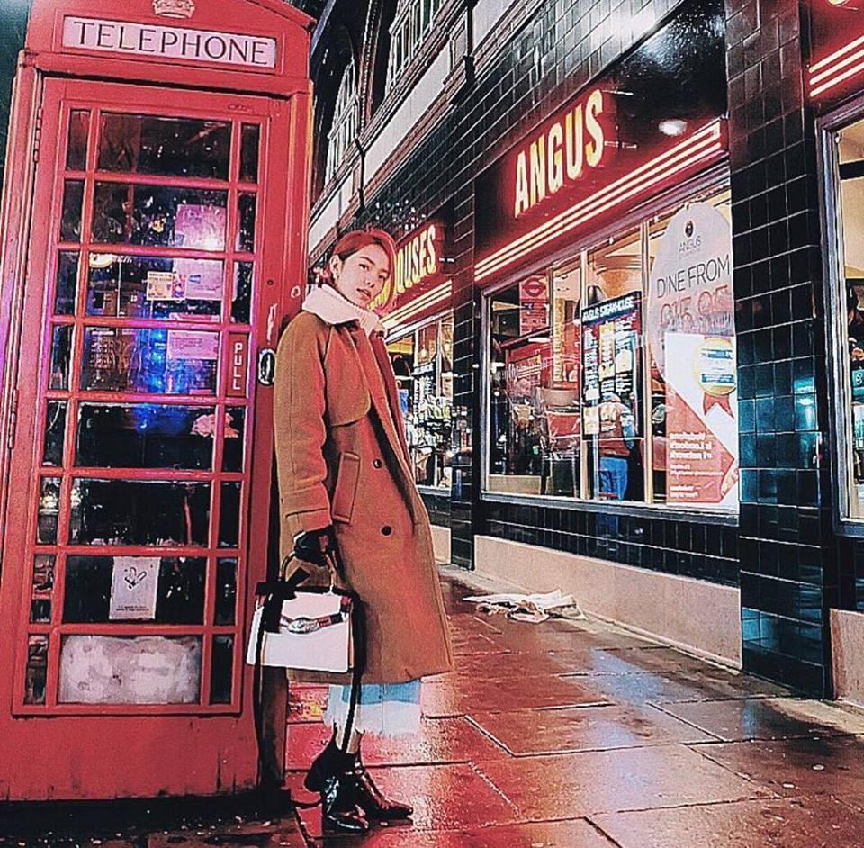 Minh Hằng khoe dáng bên bục điện thoại truyền thuyết - London