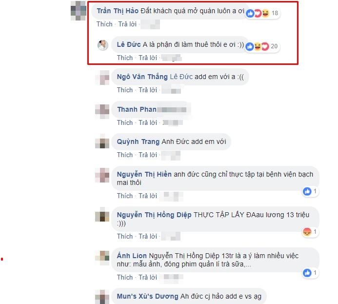 Động thái mới của Lê Đức giữa ồn ào bị tố "giả tạo" lập tức thu hút chú ý. Bên cạnh hàng chục nghìn lượt like và chia sẻ, nhiều người gợi ý chàng trai 23 tuổi nên sớm mở quán trà sữa riêng: "Đắt khách quá, anh mà mở quán chắc sớm thành doanh nhân thành đạt".