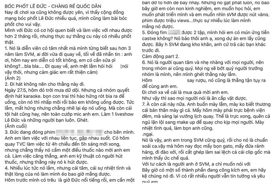 Ở một diễn biến khác, mới đây tài khoản Đức Hoàng - thành viên SVM TV (kênh giải trí dành cho sinh viên) đã đăng tải dòng trạng thái dài xoay quanh sự việc liên quan đến Lê Đức. Anh cho biết "chàng rể quốc dân" đang hợp tác cùng nhóm của mình. Theo người này, Lê Đức là người rất hiền lành, thật thà và khẳng định mọi thông tin nói về Lê Đức những ngày vừa rồi chỉ là bịa đặt.