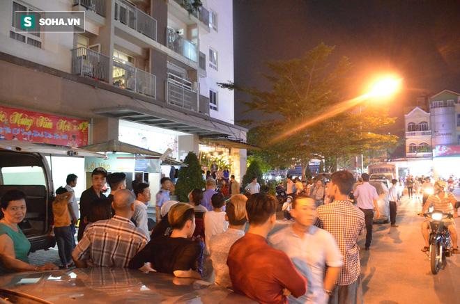 Người dân theo dõi trong tối 13/1 phía dưới chung cư.