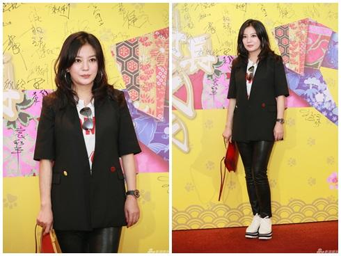 Không váy áo bánh bèo lộng lẫy, Triệu Vy lựa chọn phong cách doanh nhân thành đạt với áo blazer kẻ caro kết hợp quần ống rộng. Nàng "Én nhỏ" nhấn nhá set đồ bằng phụ kiện đồng hồ và túi xách tông đen cơ bản. Trang phục tinh tế đem đến cho nữ diễn viên vẻ sang chảnh, tươi trẻ ở tuổi 42.