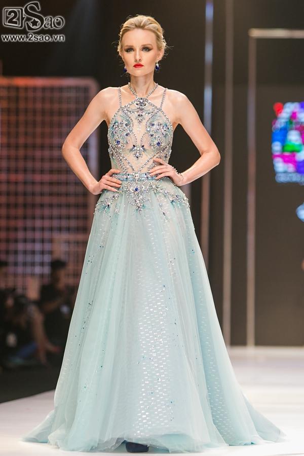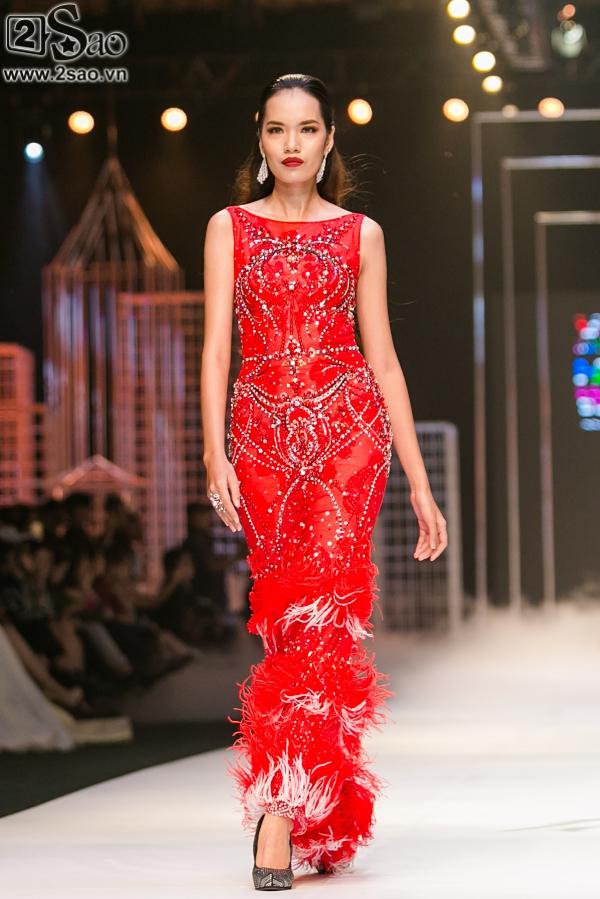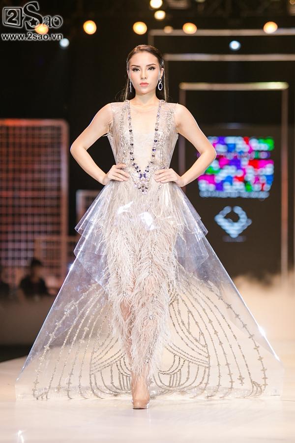 Trong suốt thời gian trình diễn, các người mẫu liên tục thu hút khán giả với những tràng vỗ tay tán thưởng. Khép bộ sưu tập, Hoa hậu Kỳ Duyên bước ra trong bộ váy kết hợp lông vũ và chất liệu nhựa dẻo trong suốt. Bộ váy khá nặng nhưng người đẹp vẫn làm chủ sân khấu tốt nhờ siêng tập catwalk nhiều giờ liền trước thềm show.