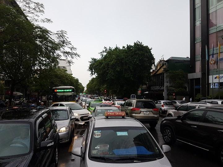 Khu vực các quận trung tâm như Hoàn Kiếm, Đống Đa cũng xảy ra tình trạng ùn tắc sau mưa lớn. Tại các tuyến phố Lê Duẩn - Trần Hưng Đạo - Lý Thường Kiệt... mưa lớn khiến một số đoạn đường bị ngập nặng, ô tô lưu thông rất khó khăn.