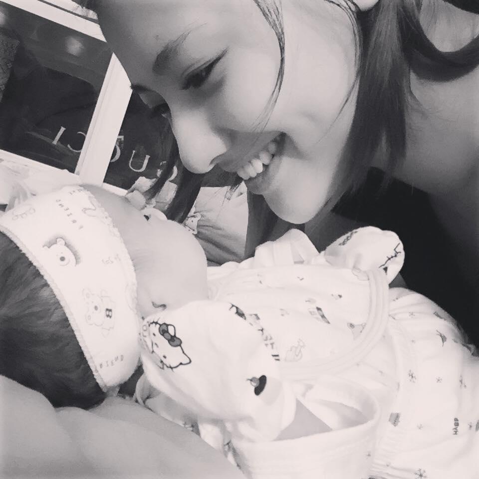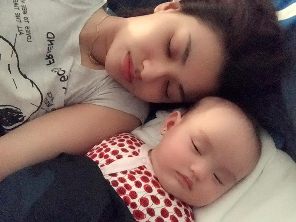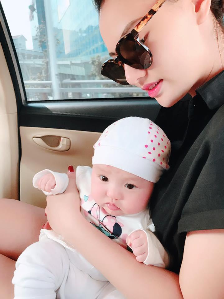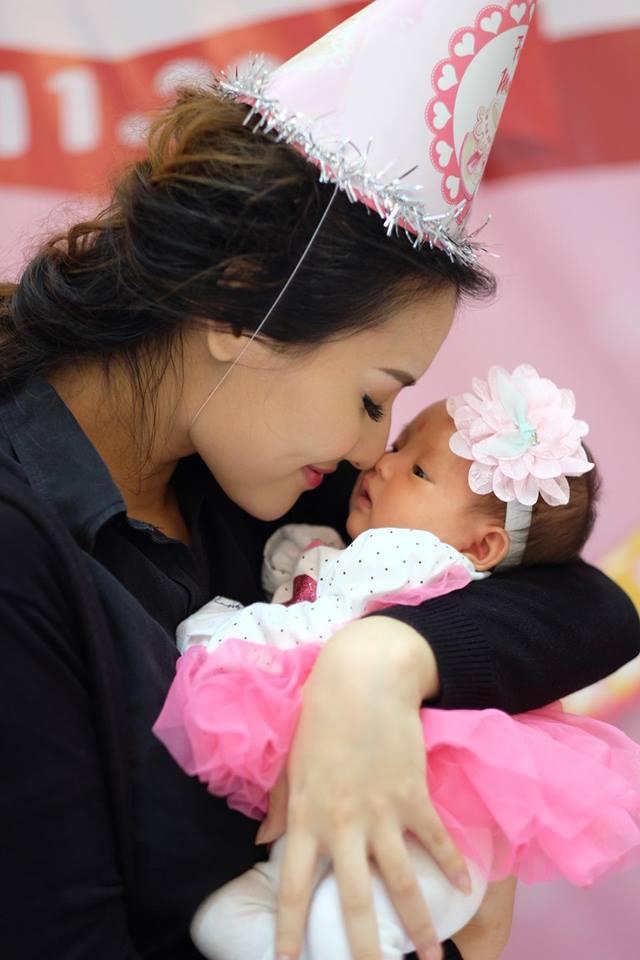 Hồng Quế cưng nựng con trong ngày đầy tháng cô bé