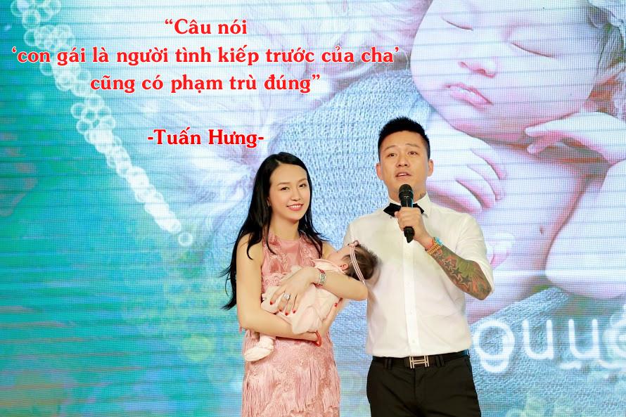Tuấn Hưng: “Tôi cũng chỉ vừa làm bố của bé gái mới 2 tháng tuổi, tôi nghĩ dù con trai hay con gái khi lớn lên đều cần sự dạy dỗ từ mẹ, nhưng để bảo vệ thì con gái vẫn chọn bố, thậm chí xem bố là điểm tựa bảo bọc, tư vấn chuyện tình cảm. Dù sau này đã có chồng, lập gia đình thì bố vẫn là người an toàn, bờ vai vững chãi và không bao giờ bỏ rơi họ. Thế nên, tôi nghĩ câu nói cũng có phạm trù đúng”.