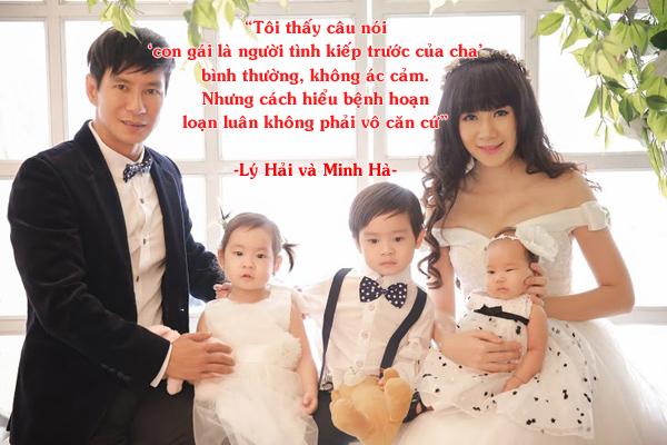 Không nghiêng hẳn về bên nào, vợ chồng nam ca sĩ Lý Hải bày tỏ sự không ác cảm với câu "con gái là người tình kiếp trước của cha". Tuy nhiên, cặp phụ huynh của bộ tứ thiên thần hai gái - hai trai vẫn bày tỏ họ sự chia sẻ với suy nghĩ "câu nói này bệnh hoạn, loạn luân" bởi nó không hẳn là vô căn cứ.