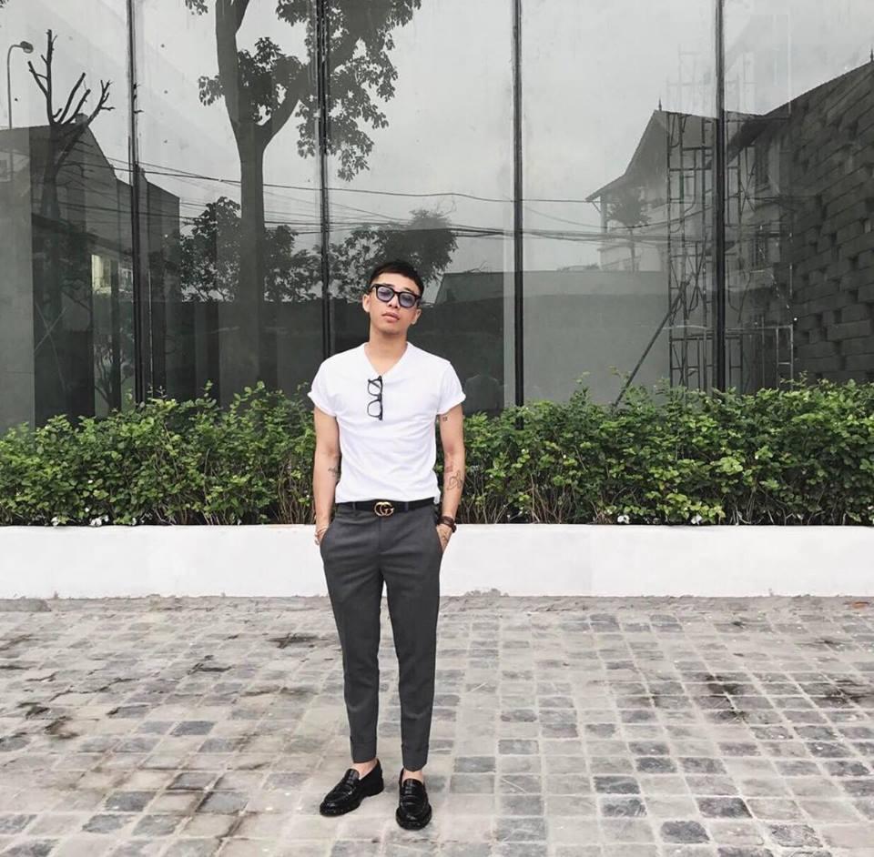 Rũ bỏ những bộ suit lịch lãm, Hoàng Ku phong cách đơn giản với áo phông, quần âu ống côn nhưng vẫn vô cùng thu hút.