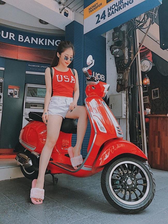 Hương Tràm năng động với set đồ áo hai dây và short ngắn.