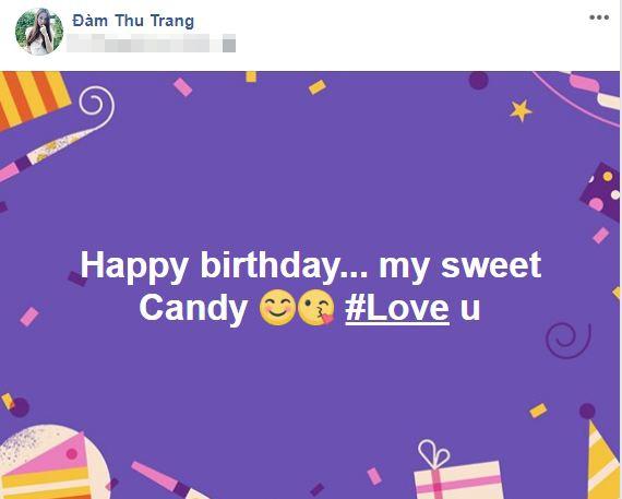 Trước đó, trên trang cá nhân, Đàm Thu Trang cũng gửi lời chúc mừng sinh nhật tới một người mà cô âu yếm gọi là “my sweet candy”. Từ dòng trạng thái, cư dân mạng cho rằng người đặc biệt này không ai khác là Subeo - con của Cường Đô La.
