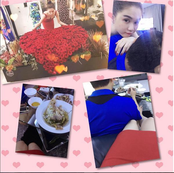 Trước đó, người đẹp đã khiến nhiều người phải ghen tị khi chia sẻ về ngày lễ tình nhân 14/02. Qua hình ảnh cho thấy, Ngoài trái tim hoa hồng lớn thì Ngọc Trinh còn có bữa tối Valentine lãng mạn ấm áp bên bạn trai. Đính kèm hình ảnh là dòng chú thích: "14/2/2016 của tôi. Chỉ cần ở bên nhau là đủ!".