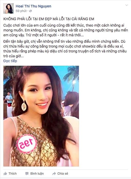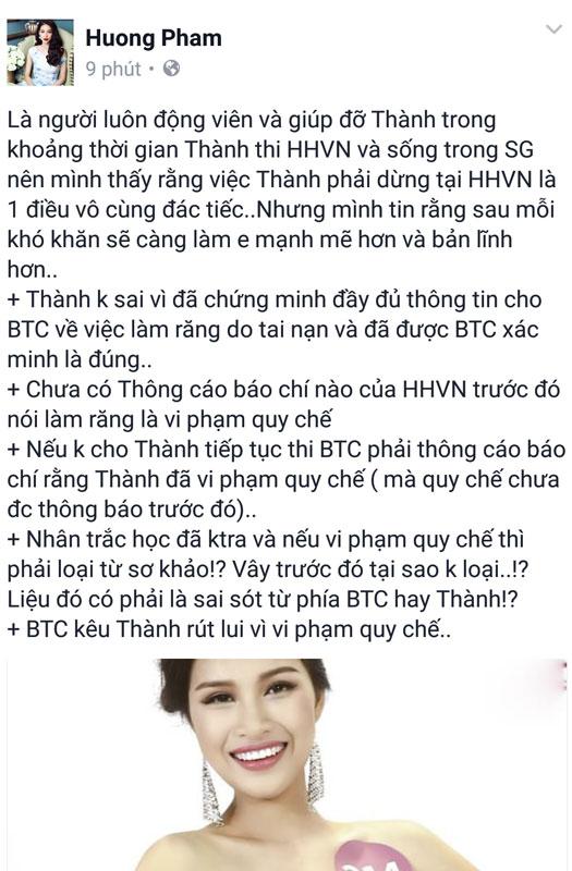 Vừa rút khỏi The Face, học trò của Phạm Hương là Nguyễn Thị Thành tiếp tục thi Hoa hậu Việt Nam 2016 và được xem là ứng viên nặng ký. Thế nhưng, cô gái này đã chính thức rời khỏi cuộc thi khi chung kết đang đến rất gần vì cho rằng bị Ban tổ chức "xử ép".