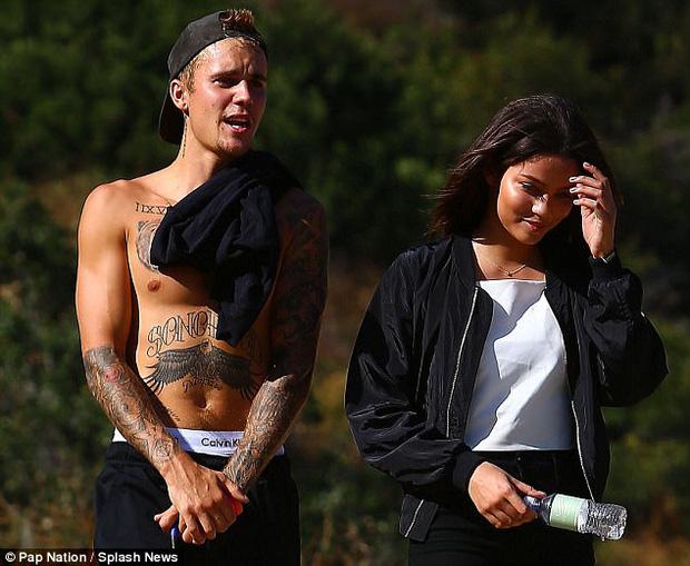 Justin Bieber cởi trần đi chơi cùng người mẫu Audreyana Michelle.