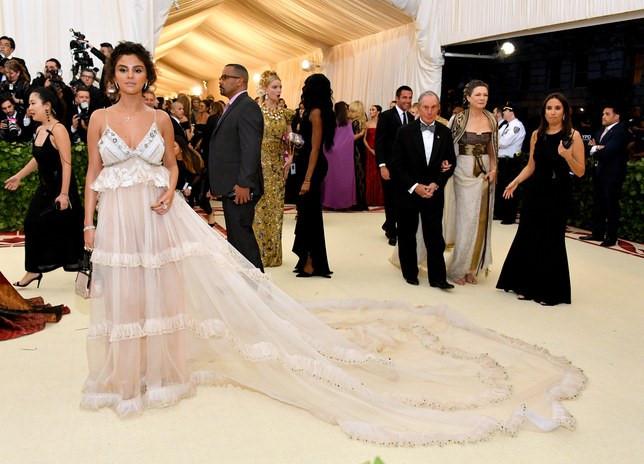 Sự kiện thời trang lớn nhất năm với chủ đề Thời trang và những tưởng tượng Công giáo được diễn ra vào tối 7/5 (theo giờ Mỹ) tại Bảo tàng Nghệ thuật Metropolitan, New York. Không thuộc nhóm những người đẹp mặc đúng chủ đề, song Selena Gomez lại trở thành tâm điểm vì làn da nâu "bất thường". Phong cách make-up rám nắng cộng với son môi nude khiến nữ ca sĩ được nhận xét trông nhợt nhạt, thiếu sức sống trên thảm đỏ.