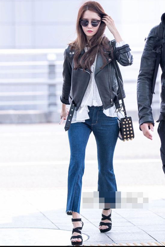 Với dáng người thanh mảnh, Yoona khéo léo lựa chọn quần denim ống loe