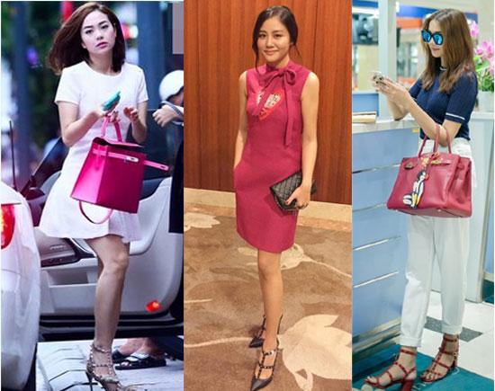 mini Chanel và giày hiệu Valentino hiện đại. Được biết, đôi giày của cô có giá