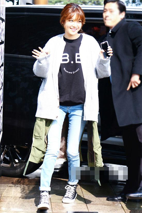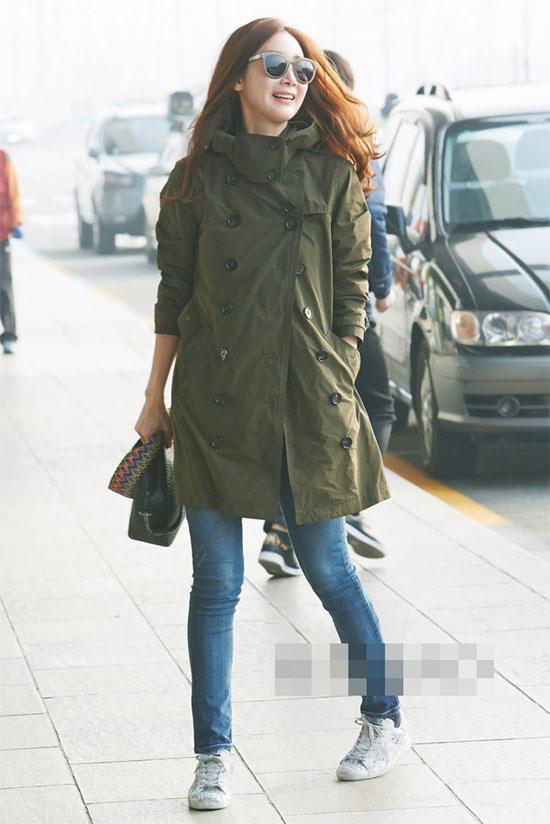 Sooyoung năng động và thời thượng với quần jeans xắn gấu, áo nỉ, áo choàng dài