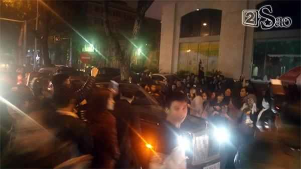 Bên ngoài tòa nhà nơi quán bar ngụ, hàng trăm fans đã "quây" kín và đứng trước siêu xe