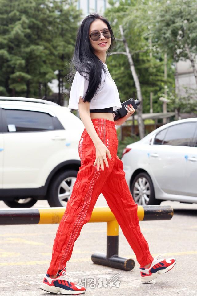 Naeun khoe eo thon cùng style sporty khỏe khoắn cùng áo croptop với quần thể thao chất liệu lạ mắt.