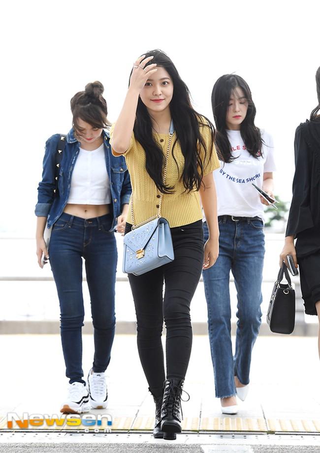 Lựa chọn áo len dệt kim kết hợp quần skinny ôm sát, Yeri lộ khuyết điểm chân cong.