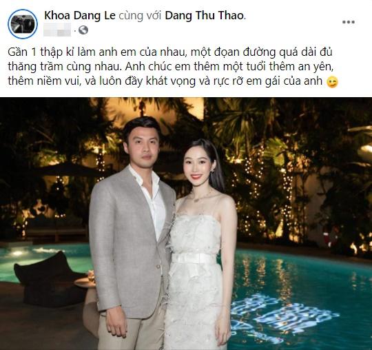 Đính kèm hình ảnh thân thiết với nàng hậu, chàng CEO nhắn nhủ người đẹp: "Gần 1 thập kỉ làm anh em của nhau, một đoạn đường quá dài đủ thăng trầm cùng nhau. Anh chúc em thêm một tuổi thêm an yên, thêm niềm vui, luôn đầy khát vọng và rực rỡ em gái của anh".