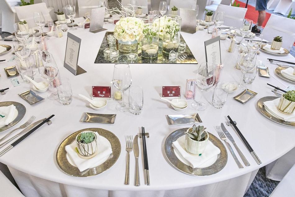 Buổi tiệc thu hút với sự xuất hiện của nhiều ngôi sao như S.H.E, Vương Tử, Ngô Ánh Khiết, Vương Á Luân,..Không gian tiệc cưới sang trọng. Không gian buổi tiệc tràn ngập màu xanh chủ đạo đều được lên ý tưởng bởi cô dâu Đinh Văn Kỳ.