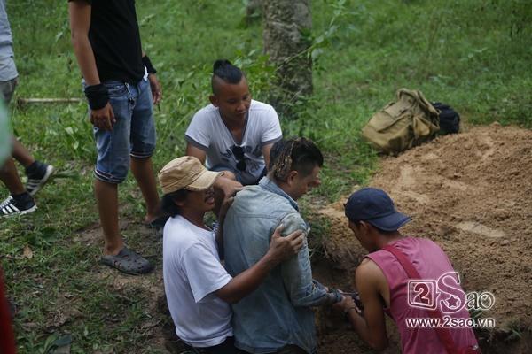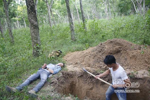 Hình ảnh Lương Mạnh Hải bị chôn sống trong phim