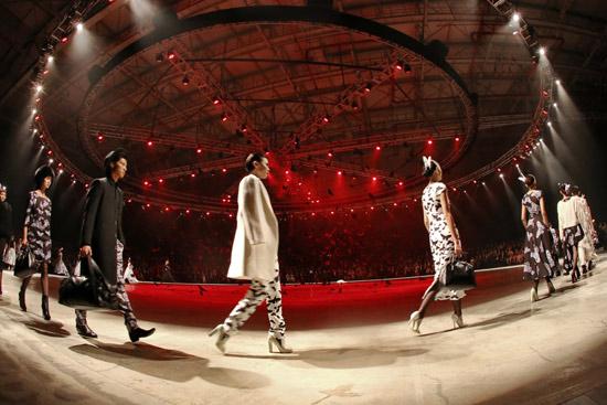 1.500 mét vuông nhung the đen (chất liệu không bắt sáng) được sử dụng để tạo hình cho sàn catwalk tròn đường kính lên tới 60 mét. 1.500 con bướm được trang trí trên sân khấu. 100 mét là chiều dài đường catwalk mà các người mẫu phải sải bước với mỗi bộ đồ trình diễn.