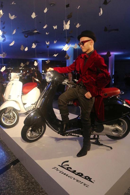 Không chỉ có may mắn là những tín đồ thời trang sở hữu đầu tiên những mẫu thiết kế của Đỗ Mạnh Cường trong BST Thu Đông 2013, các fashionesta còn có cơ hội chiêm ngưỡng một tác phẩm thời trang mới đến từ nước Ý: chiếc Vespa Primavera.