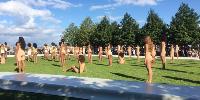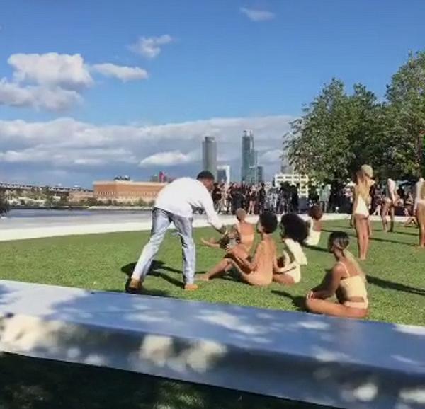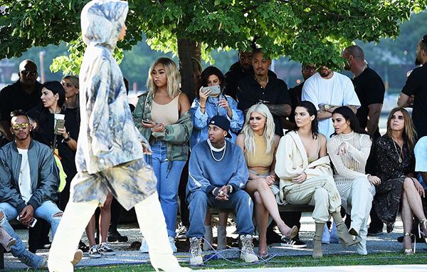 Các khách mời, gồm cả đại gia đình Kardashian và nhiều nhân vật lừng lẫy đều đến góp mặt trong show diễn Yeezy 4. Có điều, bóng râm là chỗ dành cho họ, còn đường catwalk dài đằng đẵng với cả một cái nắng chói gắt đổ lên đầu lại là những thứ dành cho các người mẫu.