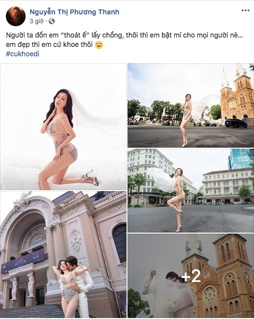 Thế nhưng, đáp trả lại làn sóng chỉ trích của dư luận, Sĩ Thanh lại nói tỉnh bơ: "Người ta đồn em "thoát ế" lấy chồng, thôi thì em bật mí cho mọi người, em đẹp thì em cứ khoe thôi".