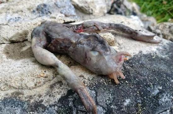 “Hai chân sau gập về phía trước, rất lạ. Phần cơ thể và đầu lại trơn bóng. Rất có thể con vật này đã từng bị ăn thịt nhưng loài săn mồi đã nhả ra. Nếu một con ếch bị dính axit trong dạ dày chim thì rất có thể xảy ra tình trạng này”, Solheim nói.