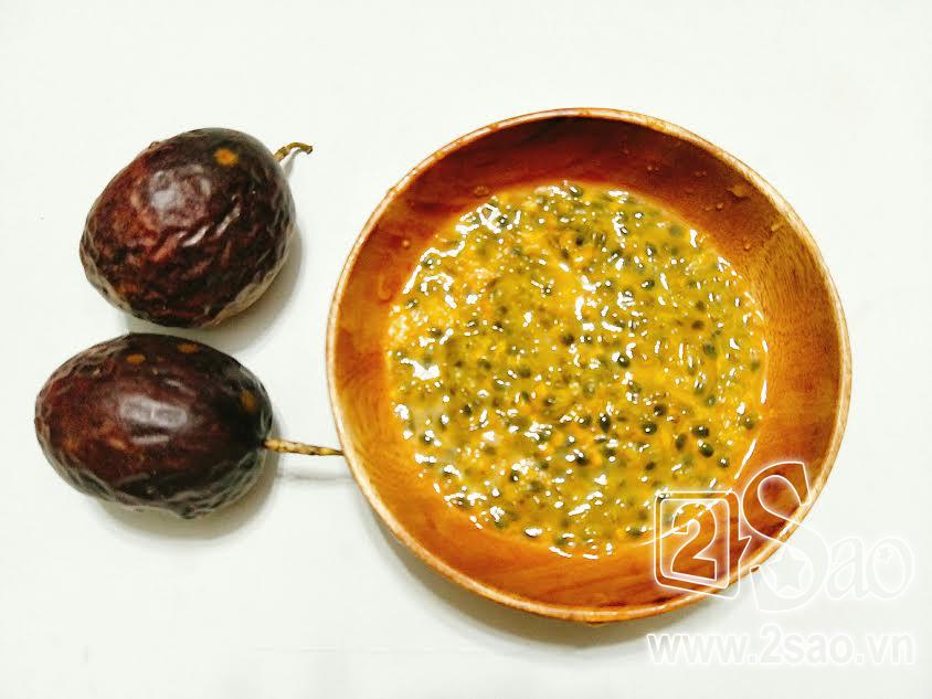 Bước 1: Chanh leo cắt làm đôi sau đó múc lấy ruột chanh.