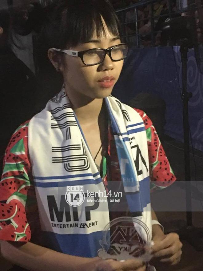 Một cô bạn nữa cũng đã nhận được rất nhiều sự ngưỡng mộ và ghen tị đêm nay, bên cạnh fan nữ được Sơn Tùng ôm eo, khoác vai trên sân khấu là Sky đạt điểm 10 trong kỳ thi THPT vừa qua được thần tượng nắm tay thật lâu trong buổi fan meeting.