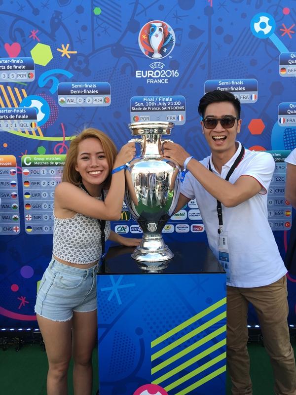 Trước trận đấu, Slim V cùng bạn bè còn được vào tham quan phòng lưu niệm của Euro 2016 và được trực tiếp "sờ" chiếc cúp sẽ đươc trao cho đội vô địch trong trận chung kết. Cảm giác này, khiến Slim V cực kỳ thích thú và là kỷ niệm khó quên với người "nghiện" bóng đá như anh. Dẫu rằng đây là Euro, nhưng, SlimV đã không quên mang theo lá cờ Việt Nam trên khán đài.