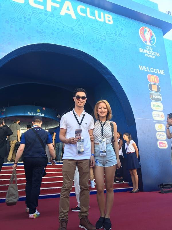 (2Sao) - Nhà sản xuất âm nhạc đình đám trong giới trẻ Slim V và bạn gái đã tới SVĐ thưởng thức trận chung kết Euro 2016 tại Pháp.