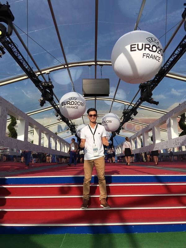 Sau bao nhiêu mơ ước từ thuở nhỏ, cuối cùng producer hàng đầu Việt Nam, SLim V cũng chính thức có mặt tại chung kết Euro 2016 tại Pháp và được hoàn toàn thỏa mãn với trận đấu lịch sử giữa Pháp và Bồ Đào Nha.
