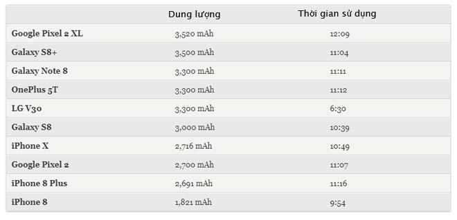 Theo đó, OnePlus 5T hiện đang đứng đầu về khả năng sạc nhanh khi đạt 59% trong 30 phút sạc và tới 93% sau 1h sạc. Tiếp đó là V30 của LG, iPhone X mặc dù không có sạc nhanh nhưng cũng cho thấy có tốc độ sạc khá là vượt trội.