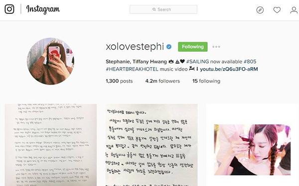 Trước đó, Tiffany cũng đã tạm ngưng sử dụng mạng xã hội, người đẹp đã bỏ theo dõi toàn bộ các tài khoảng instagram (từ 700 xuống 15 người) và hiện tại chỉ còn theo dõi các thành viên trong SNSD và gia đình họ hàng. Người đẹp cũng đã cho đăng tải một bức thư tay xin lỗi nhằm xoa dịu chỉ trích nhưng mọi việc dường như vẫn chưa có dấu hiệu dừng lại.