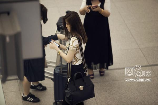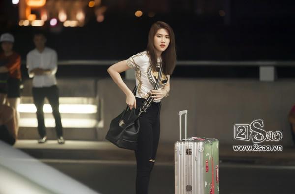 Người đẹp đem theo va li hành lý khá lớn, nhanh chóng làm thủ tục trước giờ bay. Cô tranh thủ giải quyết một số công việc qua điện thoại trước khi lên máy bay. Hiện tại, Thu Hằng khá bận rộn ở vai trò kinh doanh.