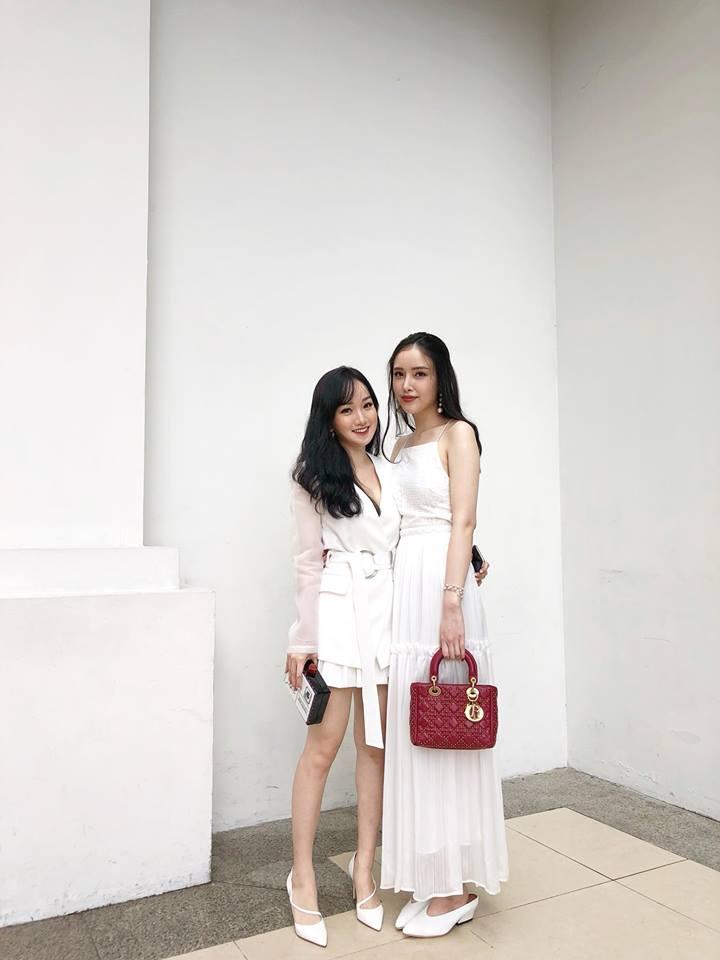 Cặp chị em xinh đẹp check-in trước khi tới dự tiệc.