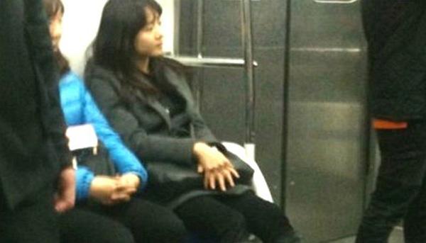 Son Dam Bi thoải mái đi chơi cùng bạn bè trên tàu điện