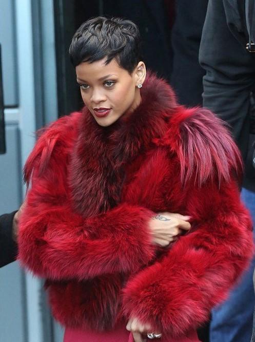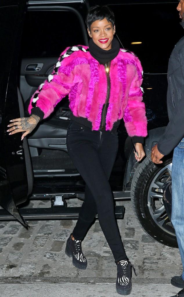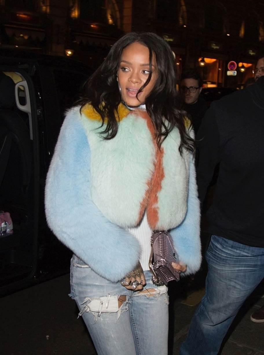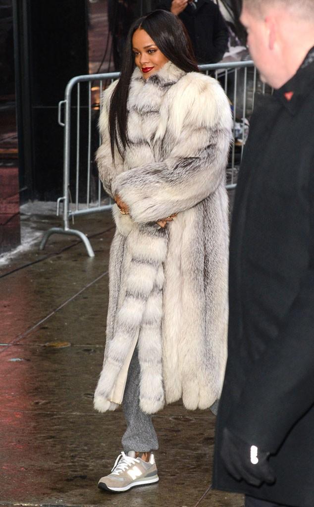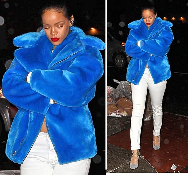Rihanna vốn nổi tiếng là fan của áo lông thú. Cô sở hữu tủ đồ với rất nhiều áo