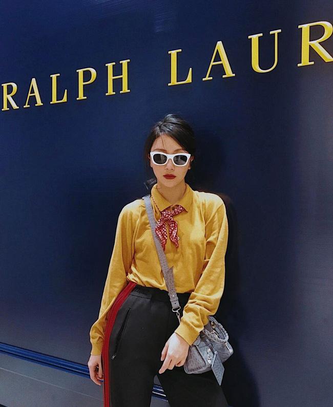Ở set đồ này, Quỳnh Anh còn mạnh dạn mix cùng... crop-top vàng rực.