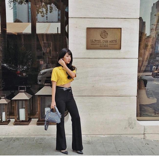 dáng quần dài ống rộng, ống loe cạp cao luôn xuất hiện dày đặc trong các bức hình ootd của cô nàng.