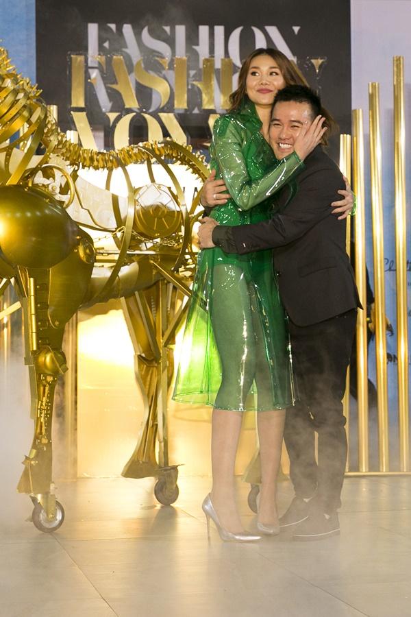 Xuất hiện với chiếc đầm xanh lá và ngay tại sân khấu trong nhà, "chân dài 1m12" cùng người mẫu Nguyễn Văn Sơn đã cùng nhau kéo chú ngựa sắt. Hình ảnh "soái tỷ" Thanh Hằng đầy mạnh mẽ, nữ quyền đã khiến nhiều cô gái phải "điêu đứng".