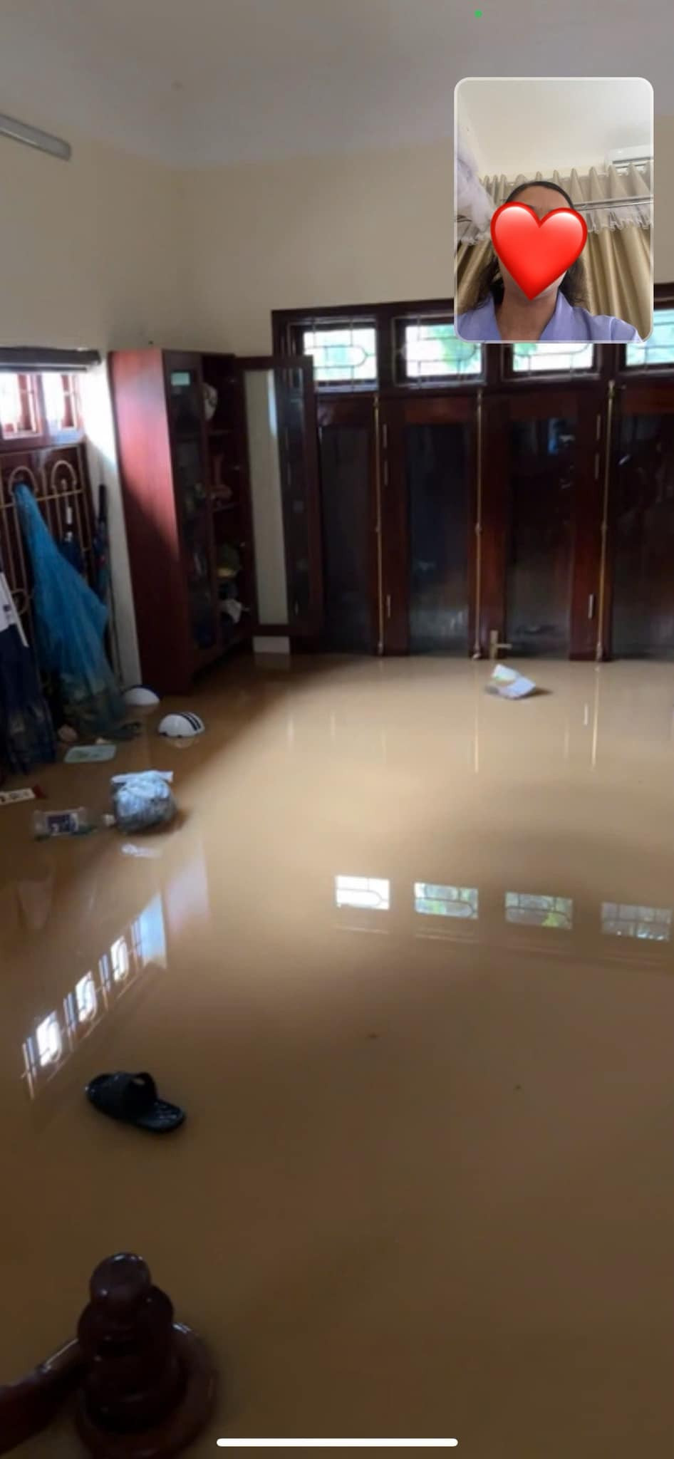 Trên trang cá nhân, cô viết: "Giờ này năm ngoái đi cứu trợm giờ này năm nay thì…". Kèm theo đó là hình ảnh ngôi nhà đã thoát nước nhưng ngập đầy bùn đất, tan hoang, đồ đạc trong nhà hỏng hóc vì bị ngấm nước... Các vật dụng đang được các chiến sĩ hỗ trợ giúp đỡ vận chuyển ra bên ngoài. Cảnh tượng trong nhà của hoa hậu 9x ai nhìn cũng sốc.