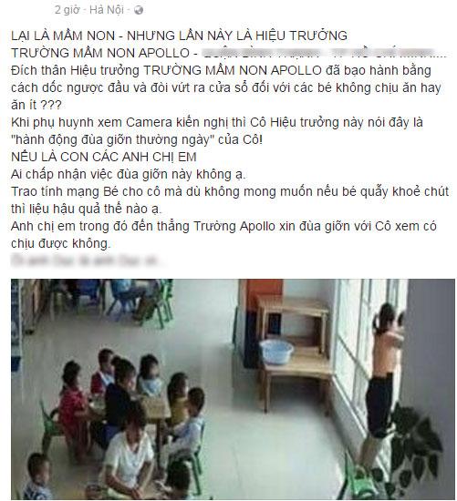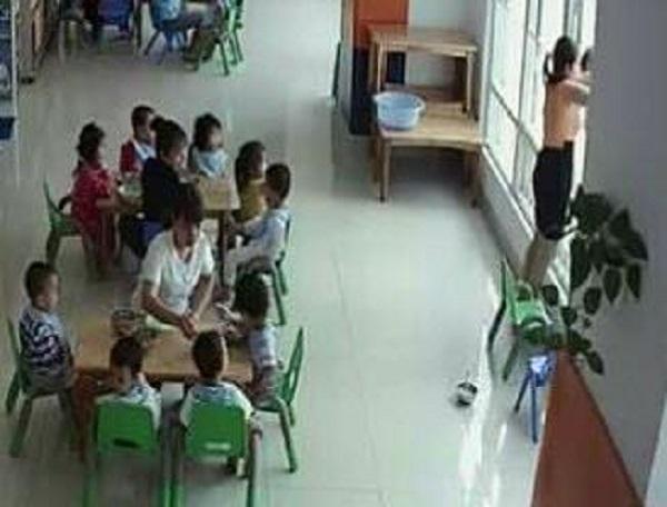 Hình ảnh cô giáo dọa ném cháu bé ra ngoài cửa sổ khiến các phụ huynh bất bình