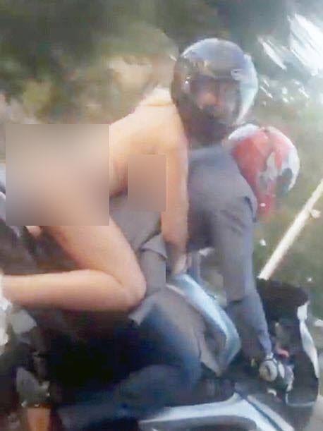Trên trang Mirror mới đây có đăng tải clip hình ảnh cô gái trẻ chỉ mặc mỗi chiếc quần chíp ren màu đen, không mặc áo ngực ngồi sau xe phân khối lớn và ôm chặt bạn trai đang điều khiển xe khiến nhiều người đi đường không khỏi giật mình.