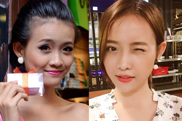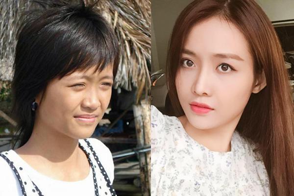 Hình ảnh khác biệt trước và sau khi phẫu thuật của chân dài team Lan Khuê. Gương mặt của Trương Mỹ Nhân thanh thoát hơn hẳn, sống mũi cao thẳng tắp.